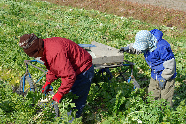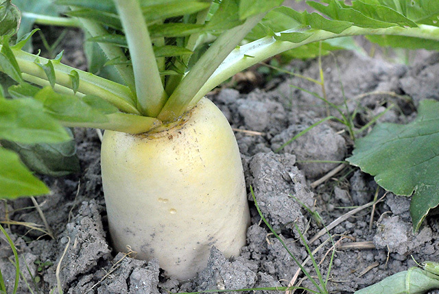冬期に霜の降りた大根は甘味が増します。紀州大根は、地元和歌山では紀の川漬けに最も適した甘味のある大根として有名です。紀州大根はたくあん漬けにも最適な大根です。
